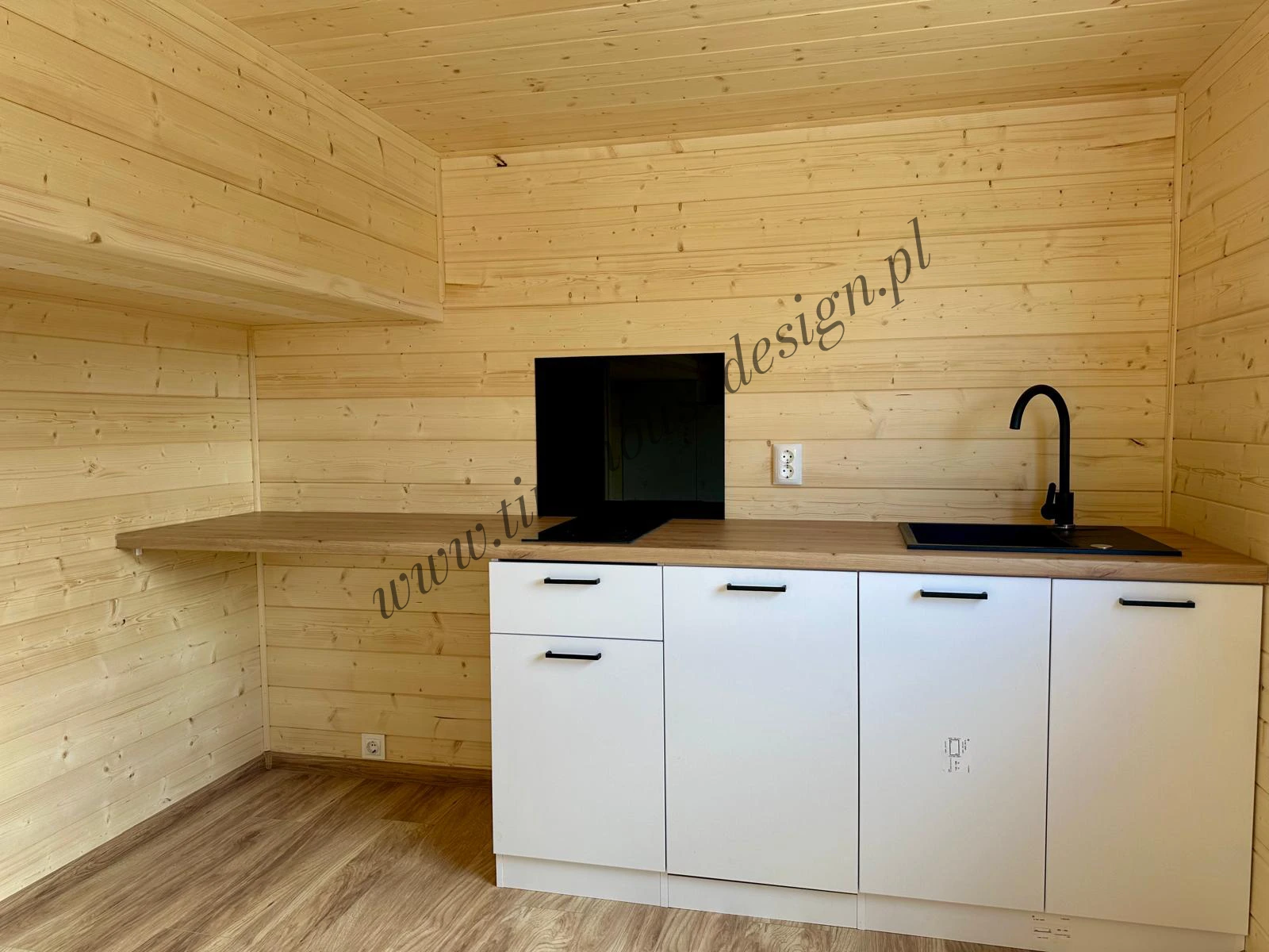 - Kuchnia z szaflami, kuchenką, zlewem, zmywarką. Możliwość dostosowania do potrzeb klienta;