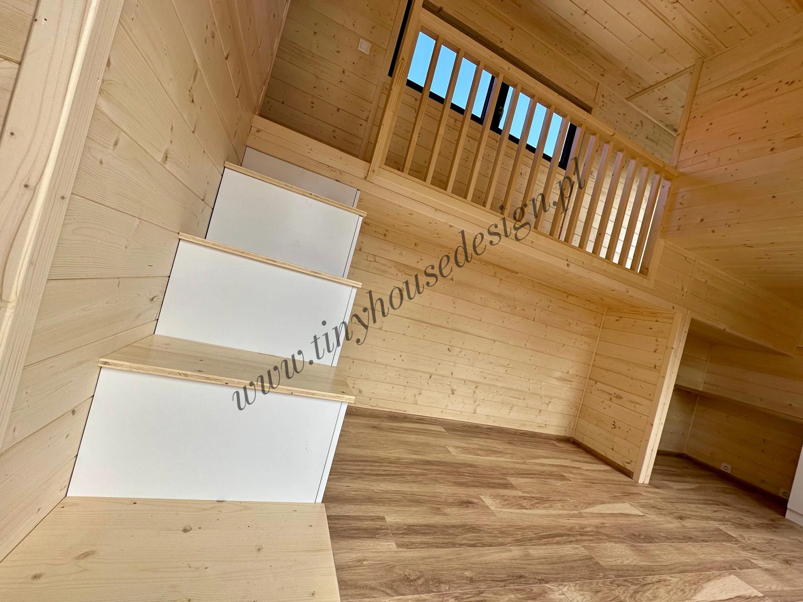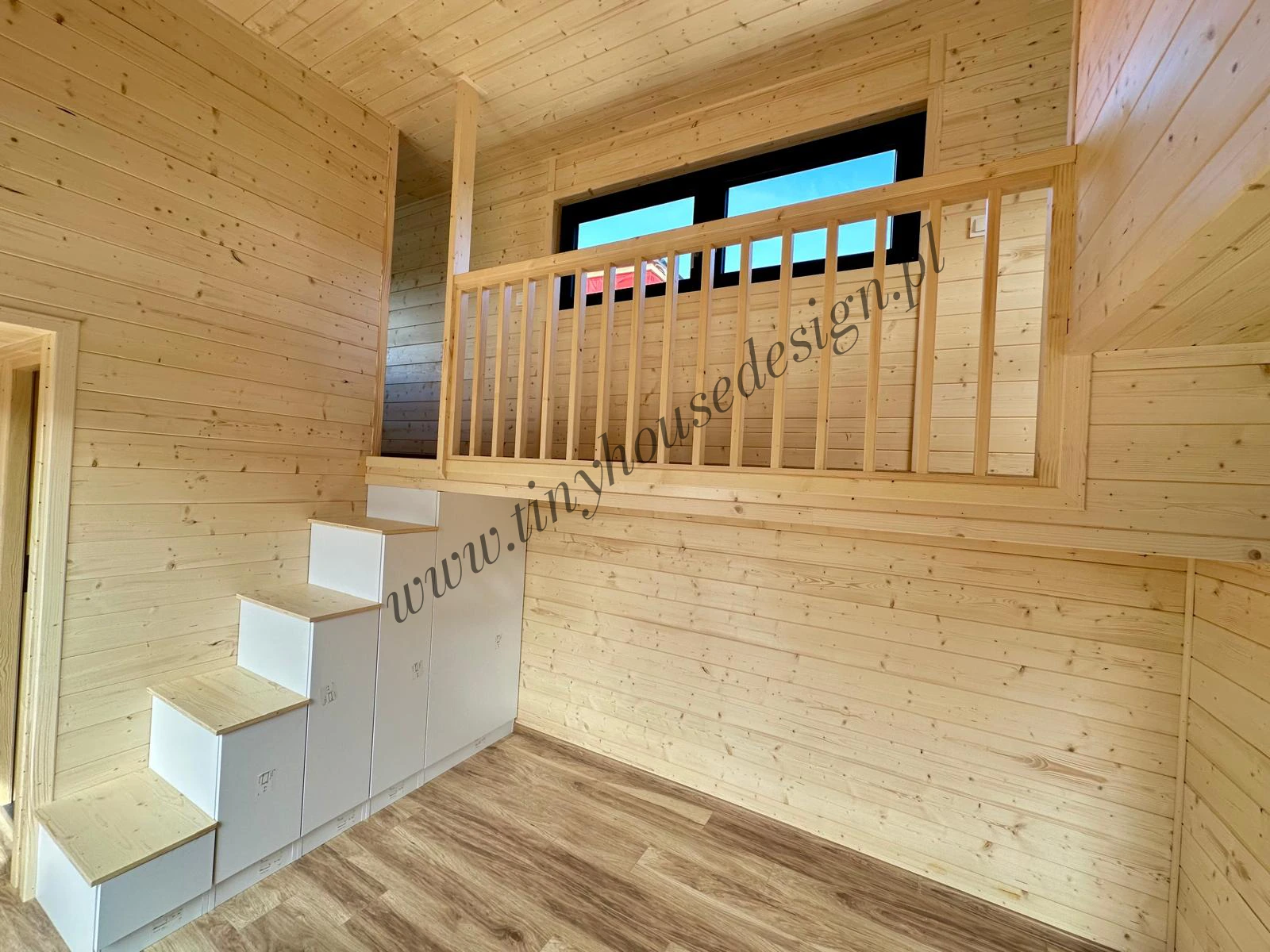 Mobilny domek Oleńka udowadnia, że prawdziwy komfort nie wymaga metrażu tylko pomysłowo zaprojektowanego układu wnętrz. Wygodne zamknięte sypialnianie na piętrze, pod nimi wyraźnie wydzielone strefy dzienne sprawiają, że maksymalnie wykorzystujesz każdy centymetr przestrzeni. Otwarta galeria nad salonem łącząca sypialnie powiększa wnętrze a funkcjonalna kuchnia i łazienka zapewniają wszystko, czego potrzebujesz. To minimalizm bez wyrzeczeń prosta droga do prawdziwego slow life.