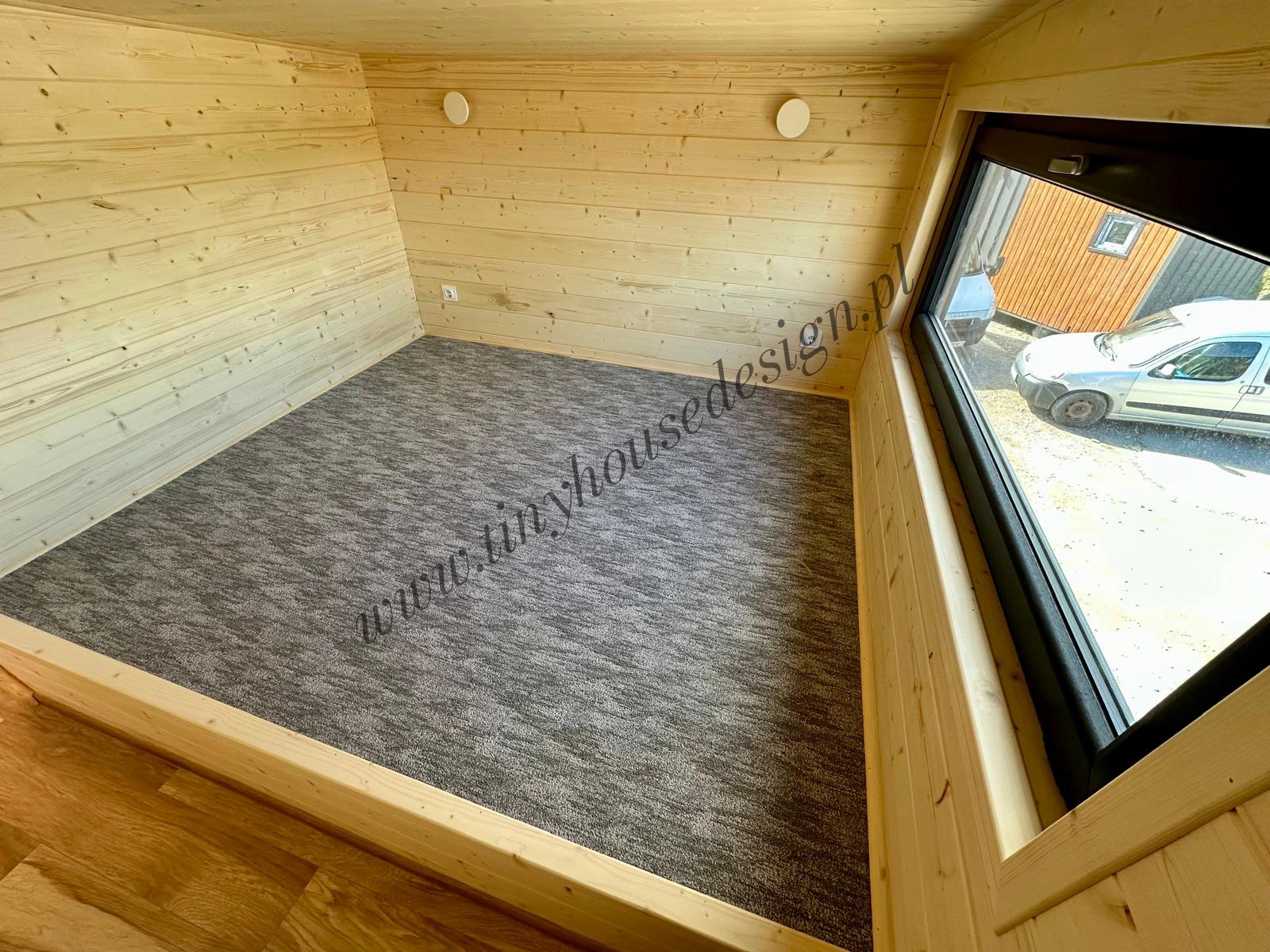 - Wnętrze wykończone w kolorze naturalnego drewna