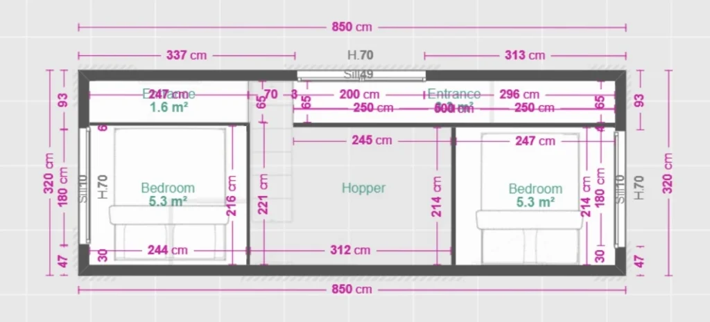- Półpiętro z dwoma dużymi sypialniami