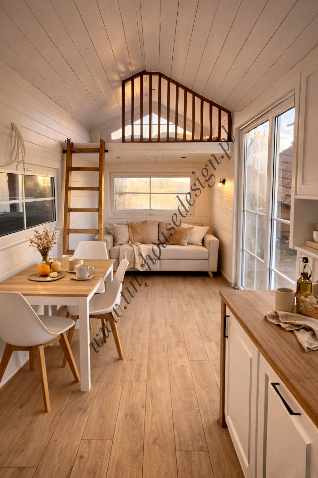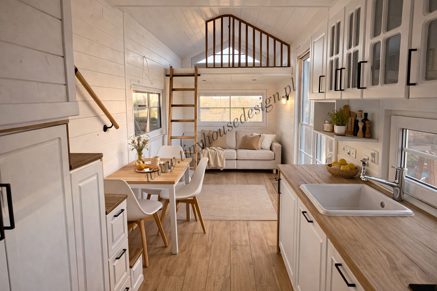 Mobilny domek Freya – nowoczesne wnętrza w rustykalnym wydaniu