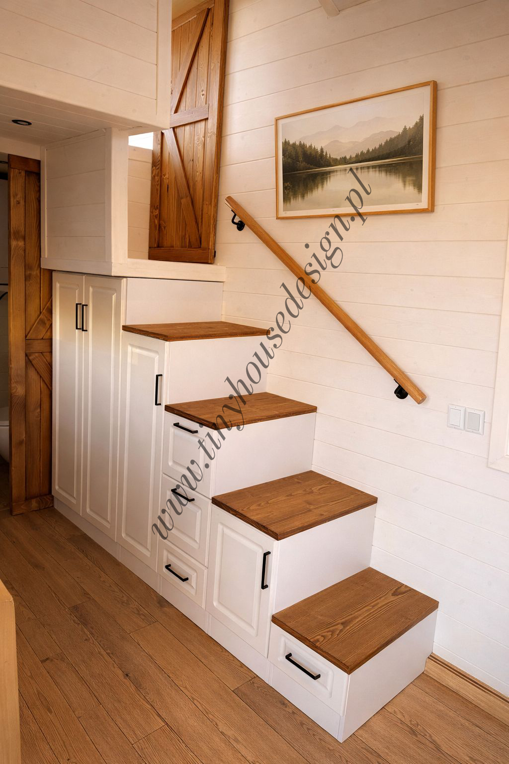 - Schody z szafkami do samej góry;