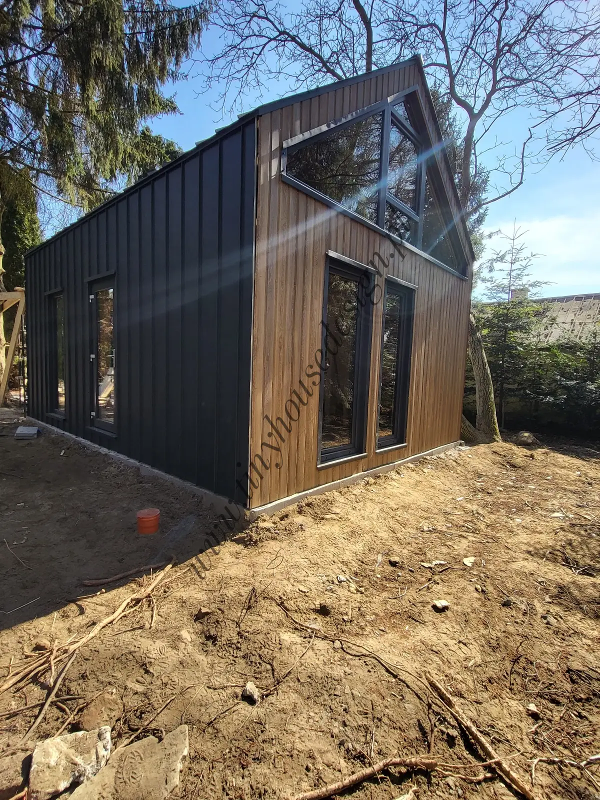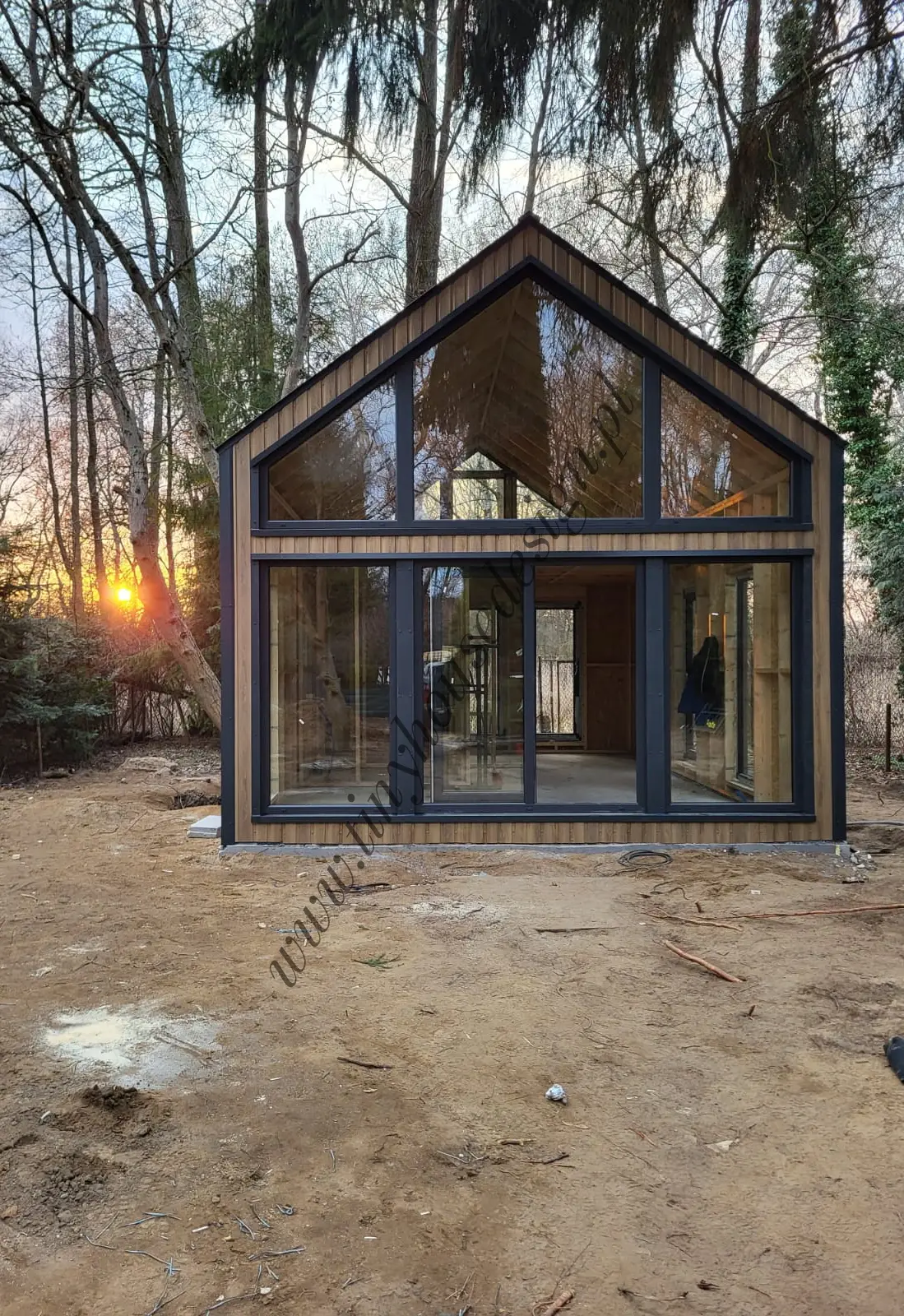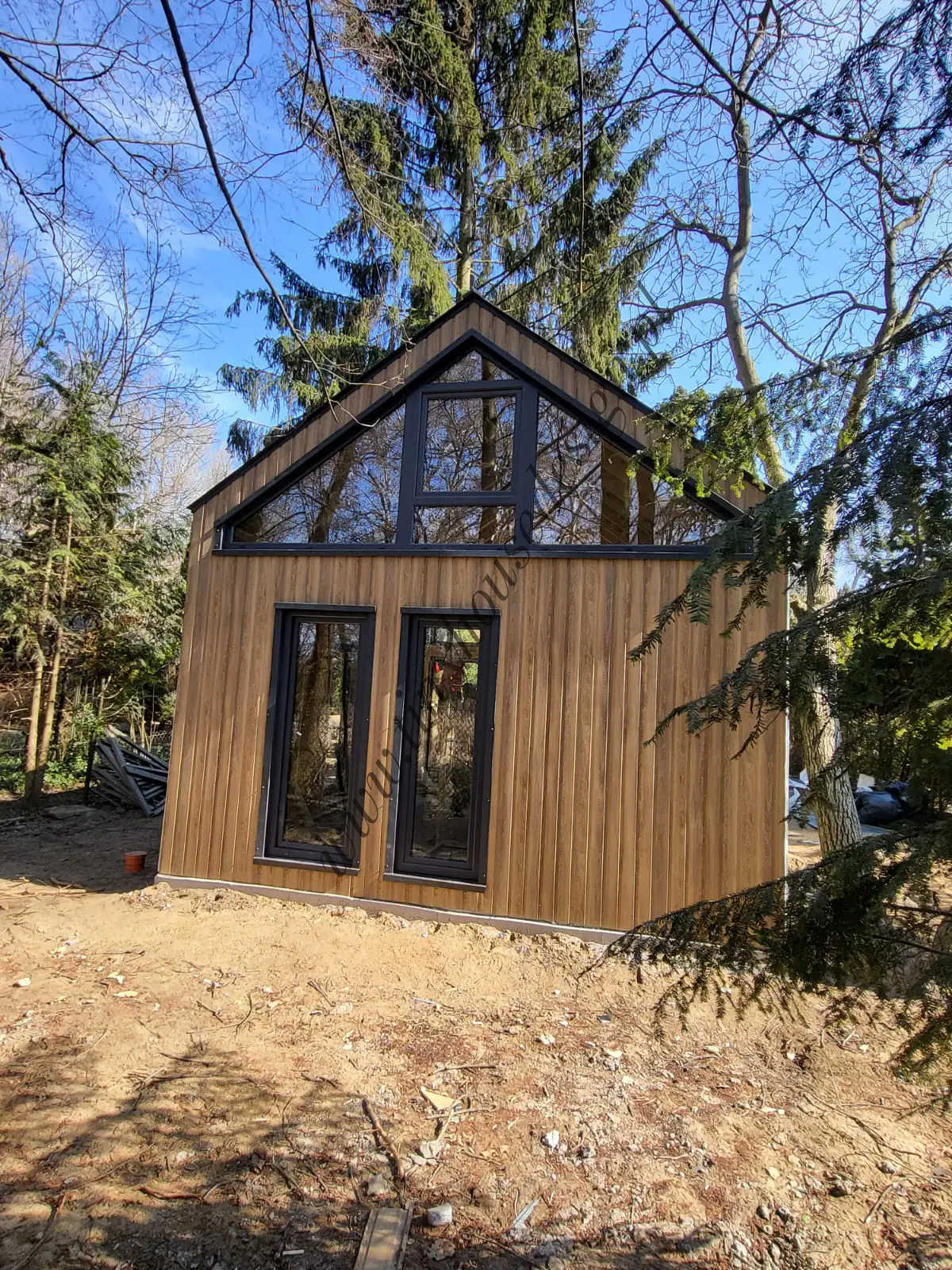 Wszystkie domki stacjonarne budujemy w stanie surowym zamkniętym, czyli w takim jak na zdjęciach. Domki budowane są na działce u klienta.