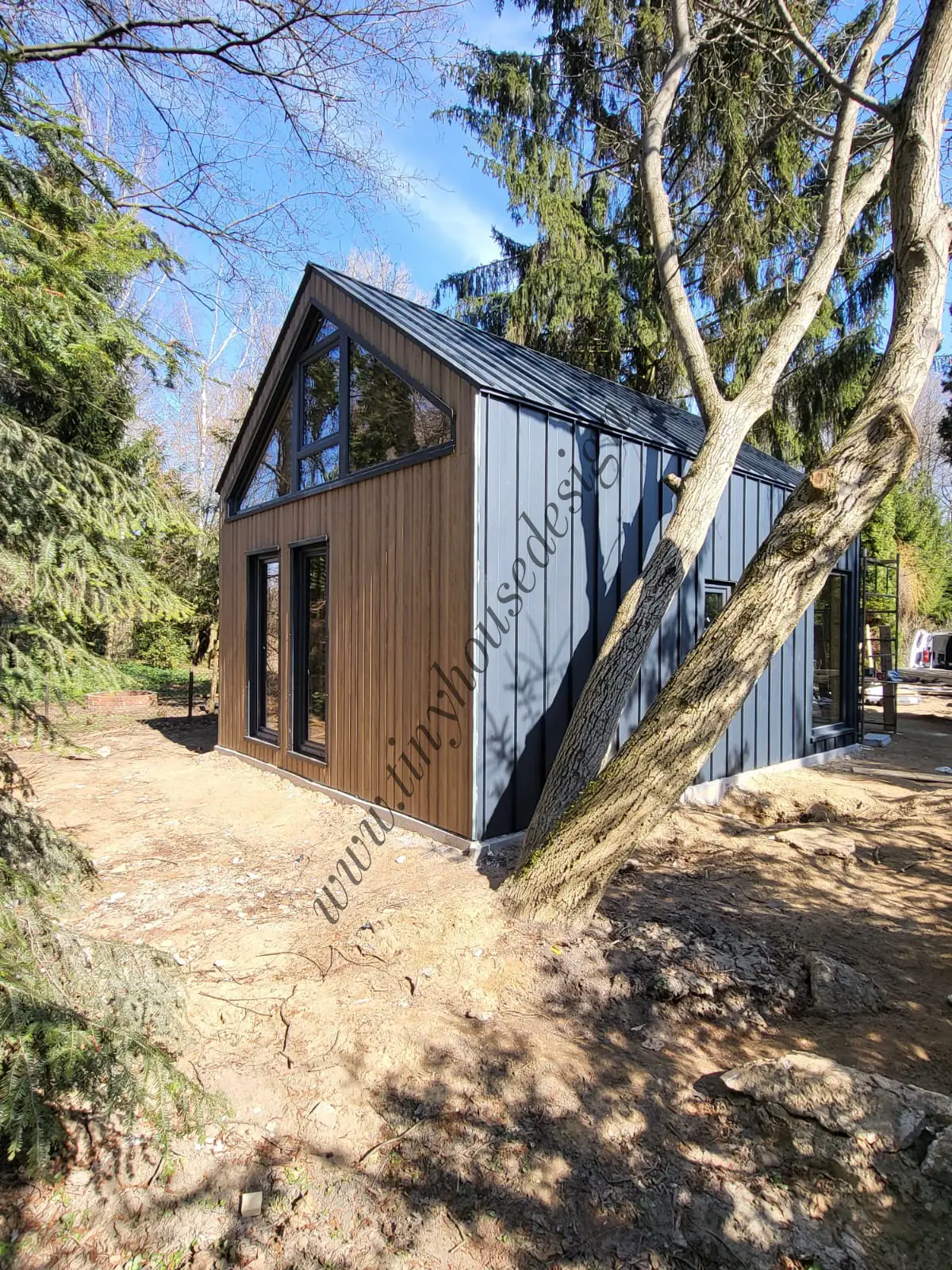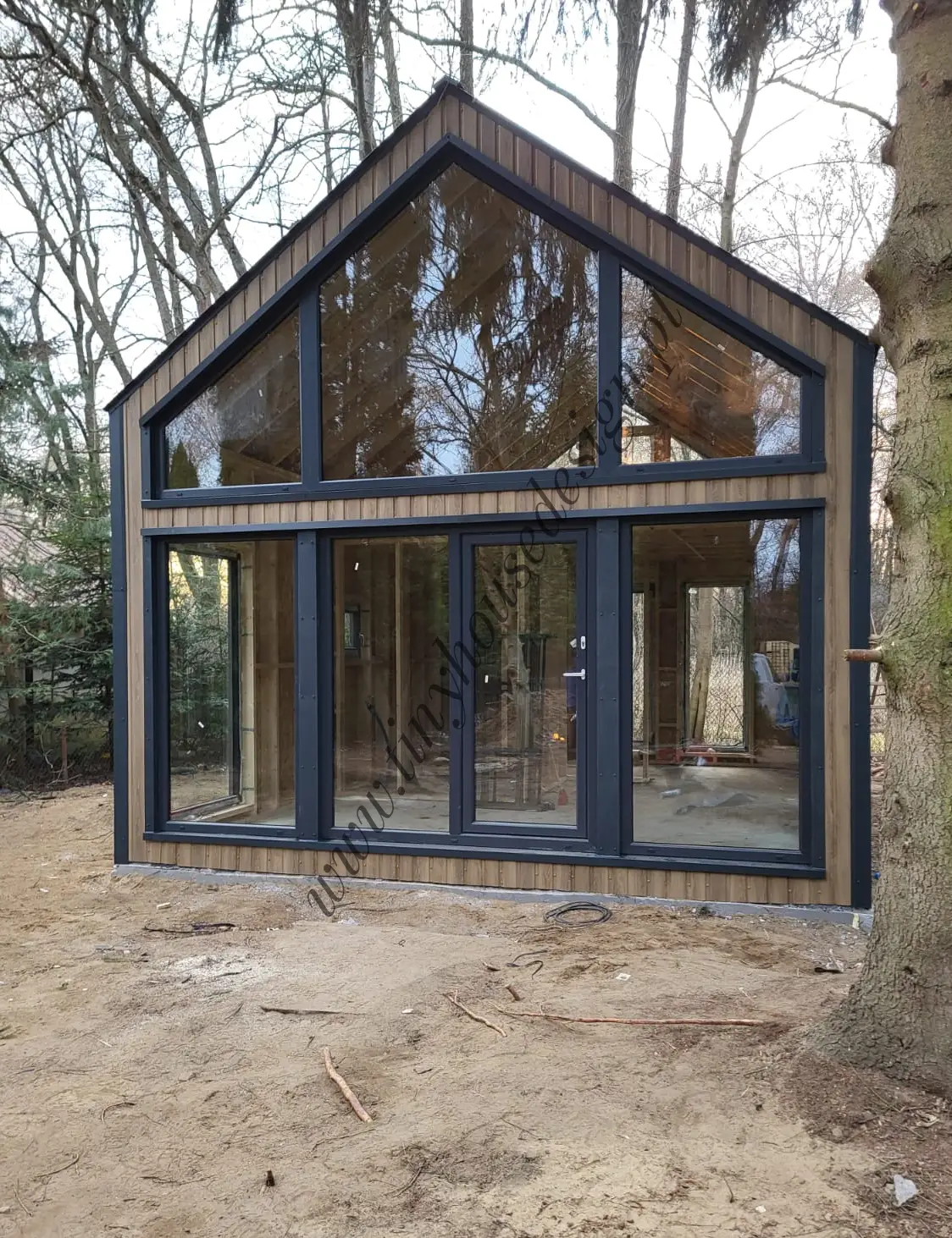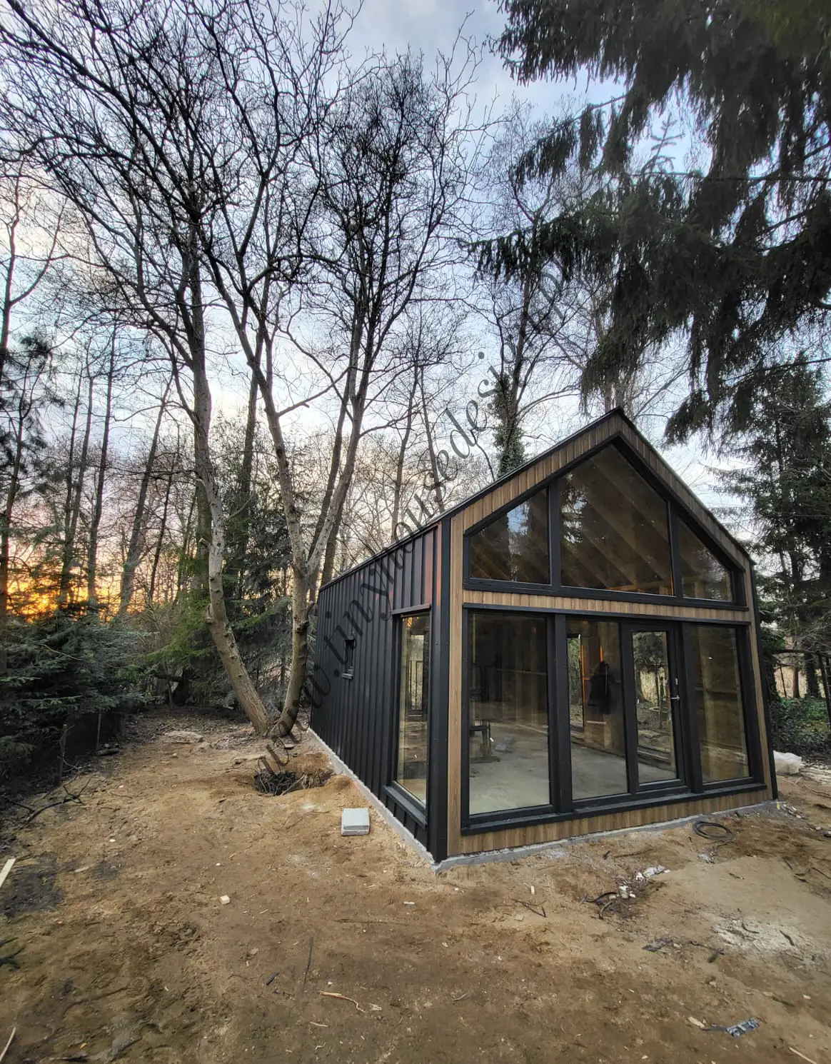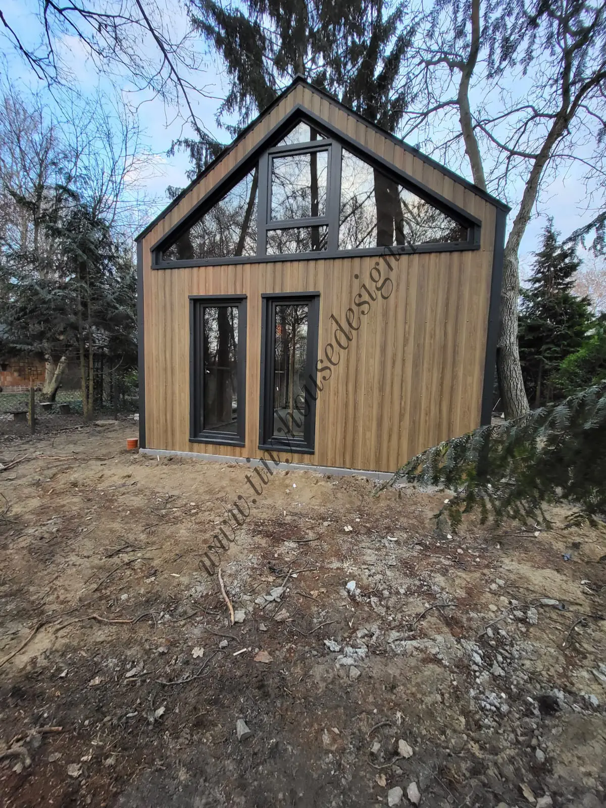 Wszystkie domki stacjonarne budujemy w stanie surowym zamkniętym, czyli w takim jak na zdjęciach. Domki budowane są na działce u klienta.