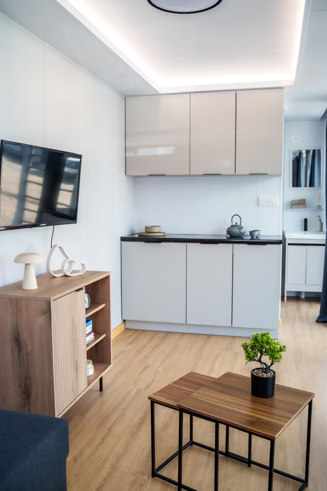 Układ pomieszczeń: 1 Łazienka + 1 Sypialnia + 1 Kuchnia (do własnej konfiguracji)
